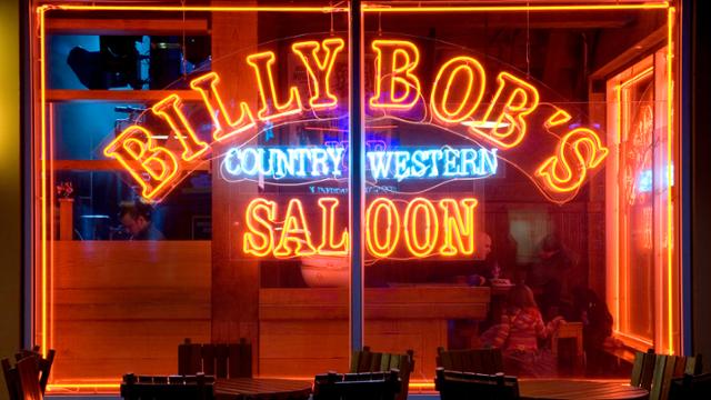 En Billy Bob's Country Western Saloon podrá disfrutar de una amplia selección de cervezas, bebidas refrescantes y nachos aromatizados. Una vez dentro, póngase cómodo y prepárese para bailar al son de ritmos desenfrenados.